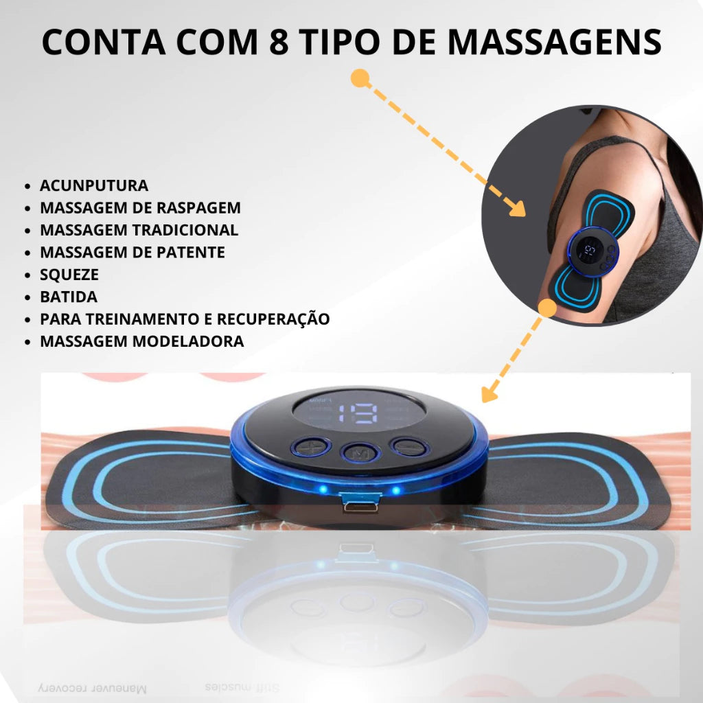 Receba totalmente GRÁTIS o Massageador EMS portátil com 8 modos e 19 intensidades, ideal para uso diário e alívio rápido de dores na coluna, ombros, pés e pernas. Seu design ergonômico permite levar para onde quiser, com bateria recarregável e desligamento automático.